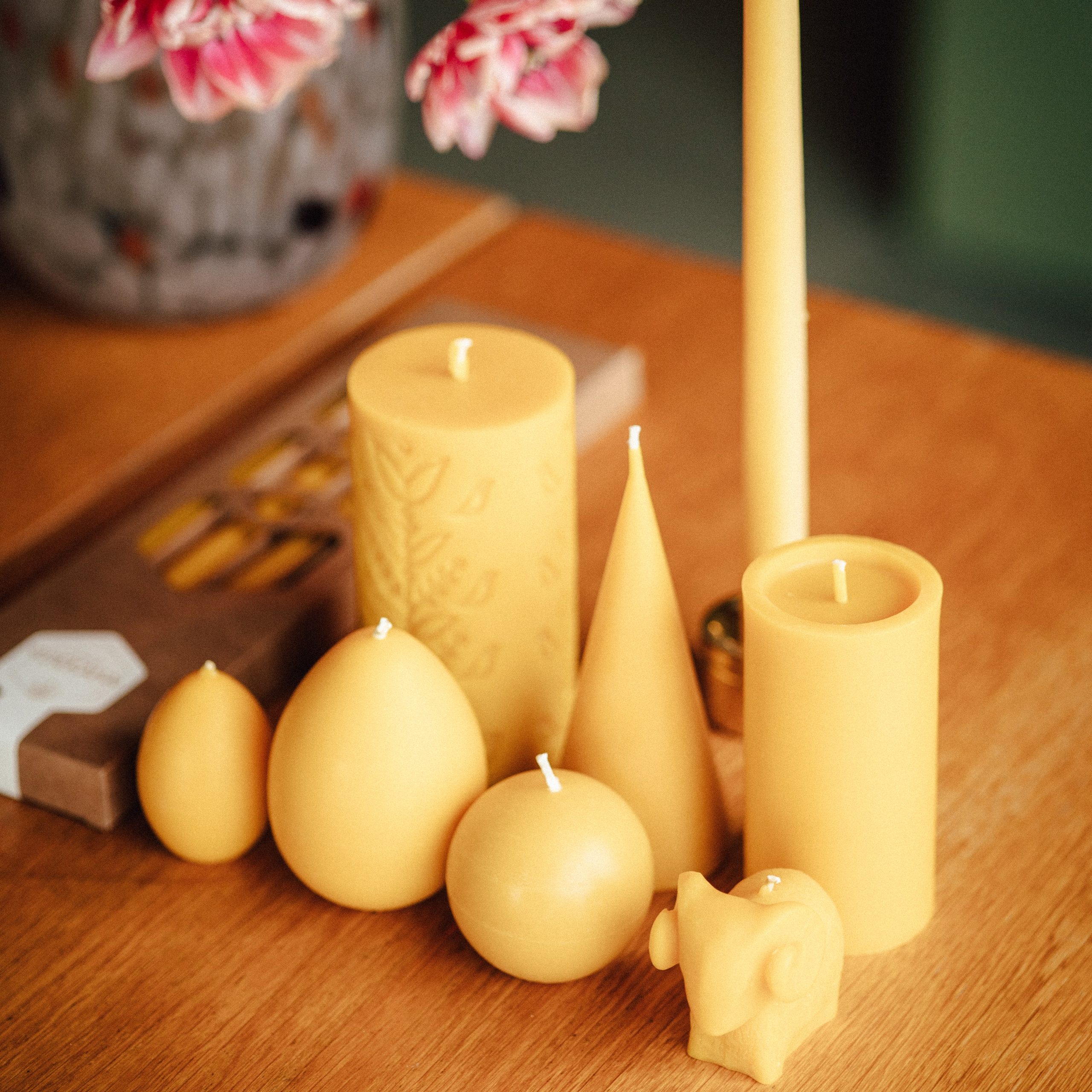 Bitte beachten Sie, dass die Farbe der Kerze von der Produktabbildung auf der Website abweichen kann. Die Farbnuancen hängen von der jeweiligen Wachspartie, der Jahreszeit und der Herkunft des Wachses ab. Zudem können individuelle Bildschirmeinstellungen die Farbdarstellung beeinflussen. Die Farbpalette reicht von leuchtendem Gelb bis zu einem Gelbgrün.